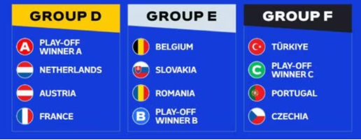 작년 12월 3일에 유로 2024 조편성 추첨이 완료 되었습니다. 강팀들은 전부 무난한 조추첨을 받았는데 대회마다 그렇듯 항상 죽음의 조가 하나씩은 나오는게 조추첨의 묘미이지 않을까 싶습니다.